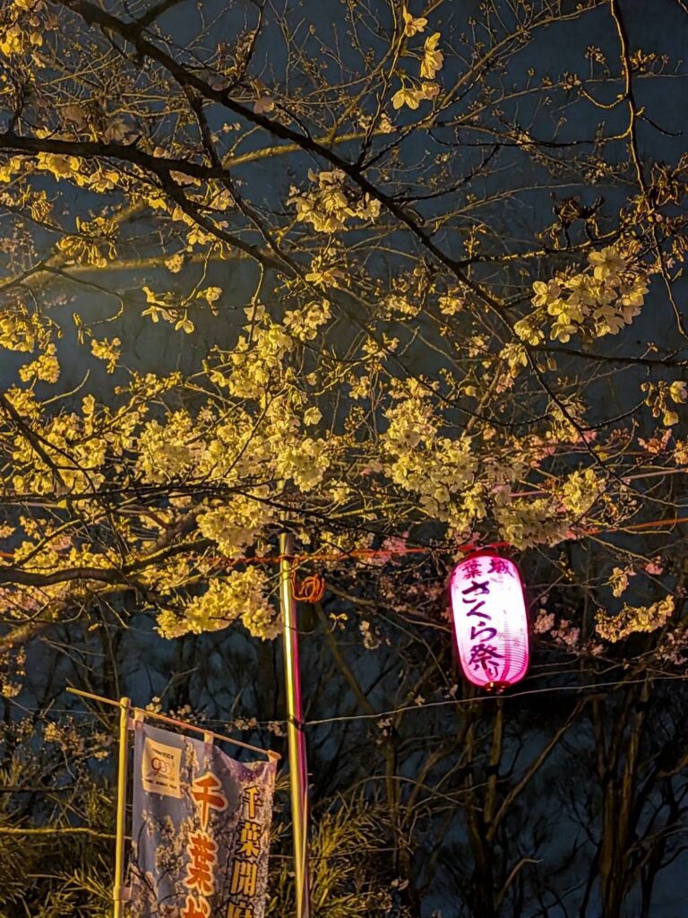 • 満開の桜とライトアップされた千葉城(郷土博物館)の競演